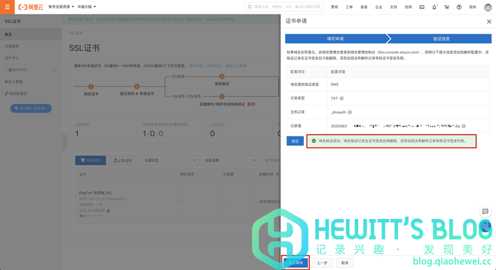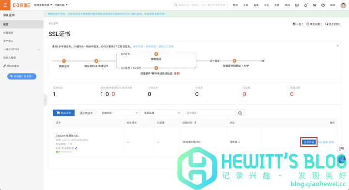 一、申请阿里云免费SSL证书