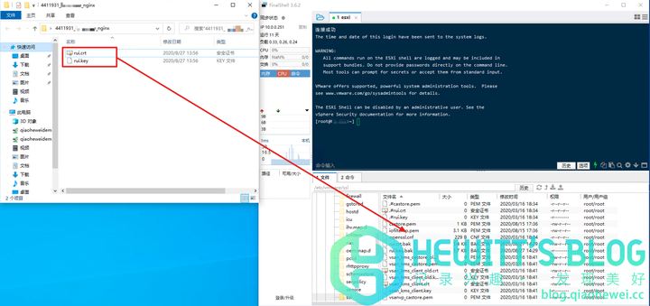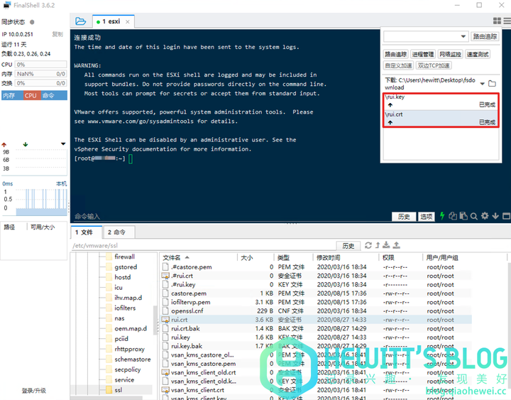 6、将修改好的文件覆盖上传至 /etc/vmware/ssl 目录。