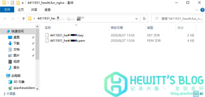 5、解压下载好的证书,将****.pem修改为rui.crt,****.key修改为rui.key。
